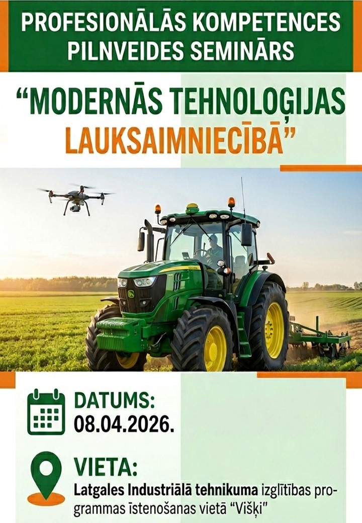 Profesionālās kompetences pilnveides seminārs ”Modernās tehnoloģijas lauksaimniecībā”